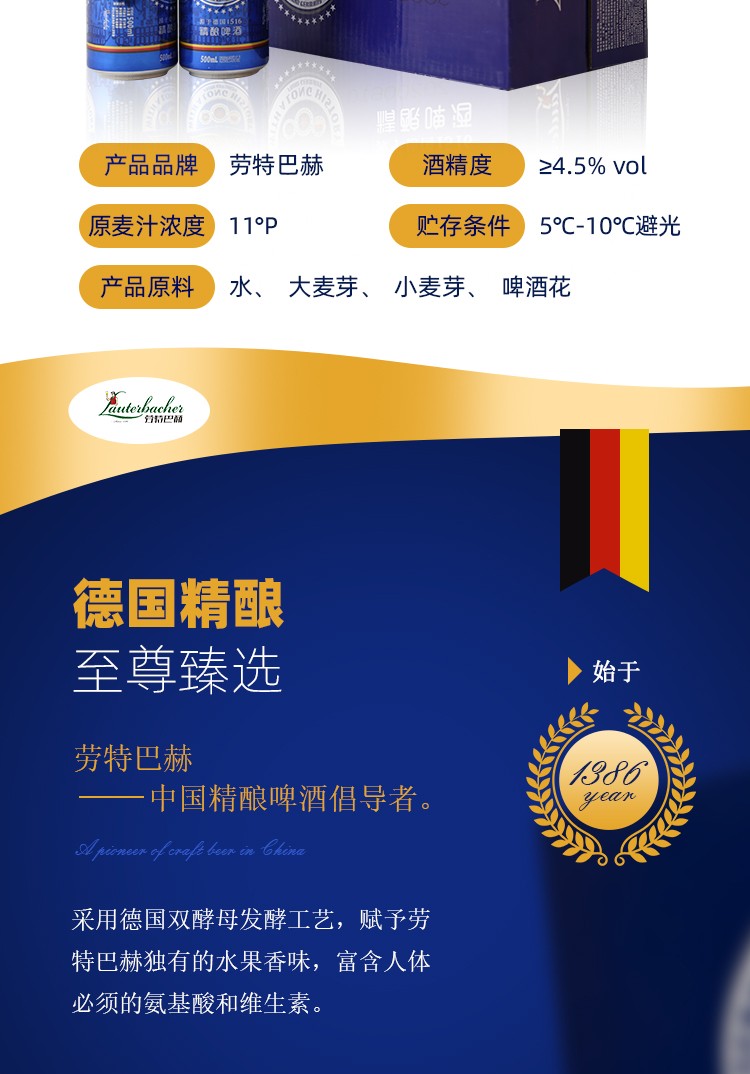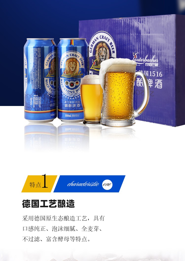 劳特巴赫精粮原浆啤酒11°P 500ml 蓝色