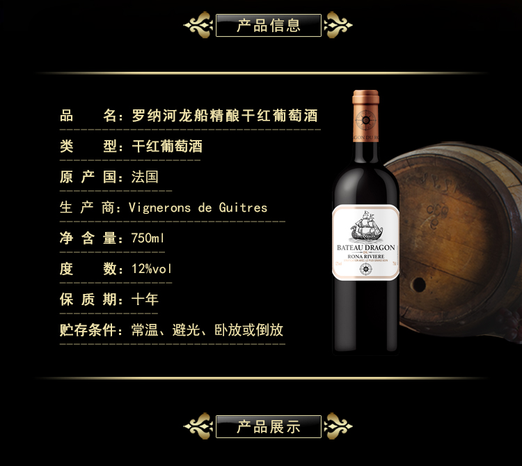 罗纳河龙船红舵干红葡萄酒