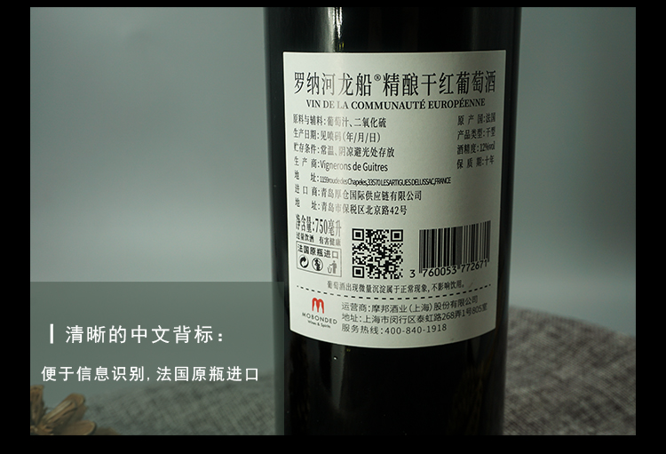 罗纳河龙船精酿干红葡萄酒白标单只