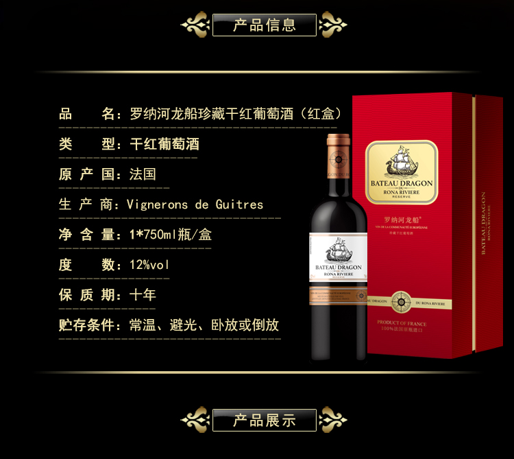 罗纳河龙船珍藏干红葡萄酒(红盒)