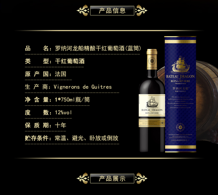 罗纳河龙船珍藏干红葡萄酒(红盒)